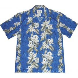 AL-456NB - Pern Orchid Panel Navy Aloha Shirt