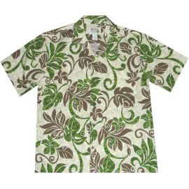 AL-456G - Pern Orchid Panel Green Aloha Shirt