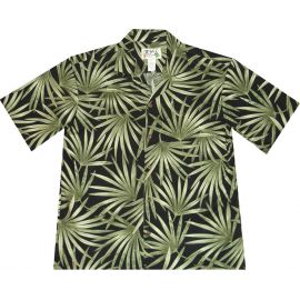 AL-482B-Palm Leaf Fever Black Aloha Shirt