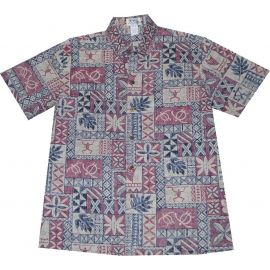 ALS-378 R- Block Honu Tapa Cotton Slim Fit Hawaiian Shirt