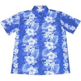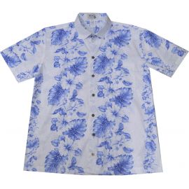 ALS-527B- White Hibiscus Slim Fit Short Sleeve Button-Up Hawaii