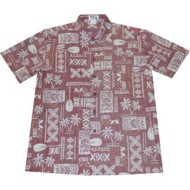 ALS-510R- Traditional Tapa Red Cotton Slim Fit Hawaiian Shirt