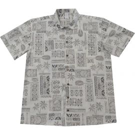 ALS-510W -Traditional Tapa White Cotton Slim Fit Hawaiian Shirt