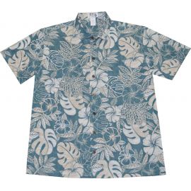 ALS-523G- Vintage Monstera Green Slim Fit Hawaiian Shirt