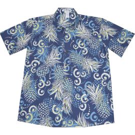 ALS-524NB- Abstract Pineapple Navyblue Slim Fit Hawaiian Shirt