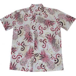 ALS-524R- Abstract Pineapple Red Cotton Slim Fit Hawaiian Shirt