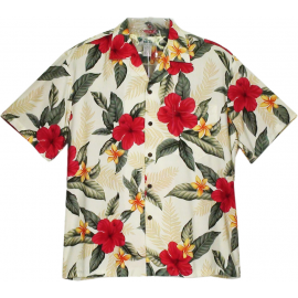 Hawaiian Shirt Plumeria Orchid Panel White