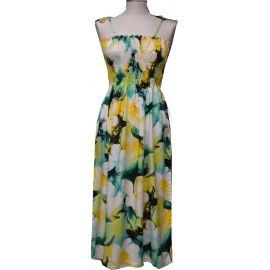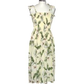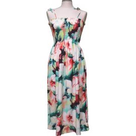 16D-827Y -Hawaiian Smock Midi Dress Watercolor Hibiscus