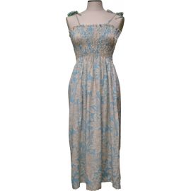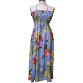 100% Cotton PoplinSmocked Tube Top DesignStrap length is adjustable.Tie rope around shoulder or halter tie behind the neckOne size fits mostly (Bust: 20"-39", Length 37''without straps )Made in Hawaii..