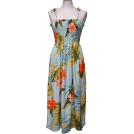 16D-827BL-Hawaiian Smock Midi Dress Watercolor Hibiscus