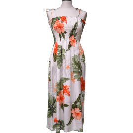 16D-826W -Hawaiian Smock Midi Dress Makakilo Hibiscus