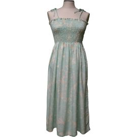 16D-828G Hawaiian Smock Midi Dress Kohala Forest