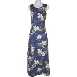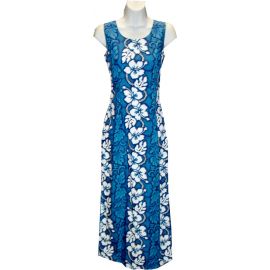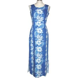 2LD-300NB-Long Hawaiian Dresses Lei Hibiscus Royal