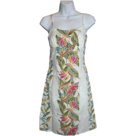 6D-809W- Orchid White Rayon Strap Short Hawaiian Dress