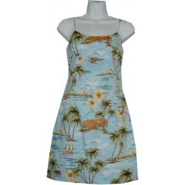 6D-354BL- Polynesian Island Blue Cotton Strap Short Hawaiian Dre