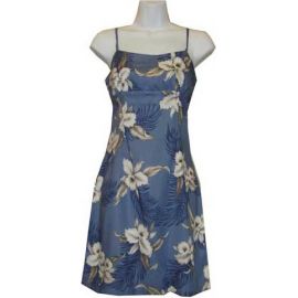 6D-809BL- Orchid Blue Rayon Strap Short Hawaiian Dress