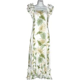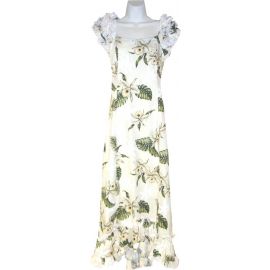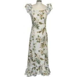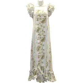 9LM-213 Hibiscus Panel White Traditional Muumuu Dress