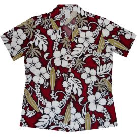 LAL-300R-Ladies Cotton Camp Aloha Shirt Hibiscus Lei