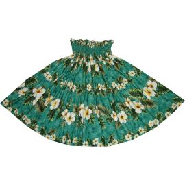 SK449G- Hawaiian Traditional Hula Skirt Hibiscus Panel Green