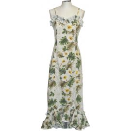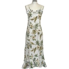100% Cotton Poplin Ruffled Neckline with adjustable strapFlattering Front and Back DartsFishtail flow back & asymmetrical ruffled hemlineCenter Back ZipperMade in Hawaii, USAWith a range of sizes and ..