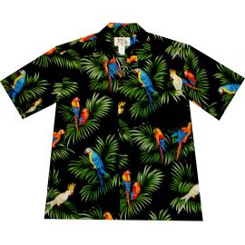 AL-422B-Parrot Palm Leaf Black Aloha Shirt
