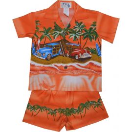 AL-418OR- Woody Car Beach Orange Cottton Mens Hawaiian Shirt