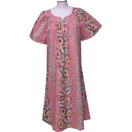 3LM-535CO- Vintage Anthurium Design Long Coral Cotton Muumuu Haw