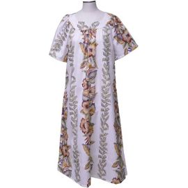 3LM-535W - Vintage Anthurium Design Long White Cotton Muumuu Haw