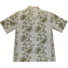 ALB-437G- Hibiscus Shining Panel White Cotton Mens Hawaiian Shir
