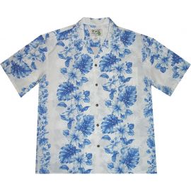 AL-434WN-Orchid Hibiscus Panel White Blue Aloha Shirt
