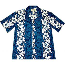 AL-300NB-Lei Hibiscus Navy Cotton Mens Hawaiian Shirt