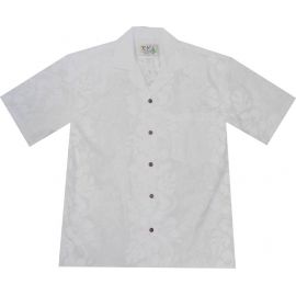 AL-213W-White Hibiscus Panel White Cotton Mens Hawaiian Shirt