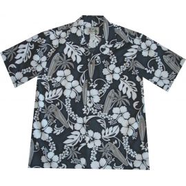 AL-300GA-Lei Hibiscus Grey Cotton Mens Hawaiian Shirt