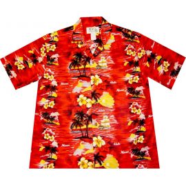 AL-304R -Hawaii Sunset Red Cotton Mens Hawaiian Shirt