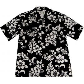 AL-354B- Original Hibiscus Black Cotton Mens Hawaiian Shirt