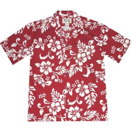 AL-354R- Original Hibiscus Red Cotton Mens Hawaiian Shirt