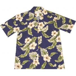 AL-807NB- Makua Hibiscus Navy Rayon Mens Aloha Shirt