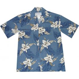 AL-816BL - Makaha Orchid Blue Rayon Mens Aloha Shirt