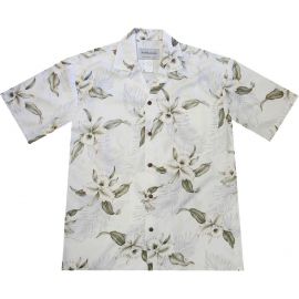 AL-809 W - Lulumahu Orchid White Rayon Mens Aloha Shirt