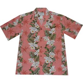 AL-811CO - Orchid Panel Coral Rayon Mens Aloha Shirt