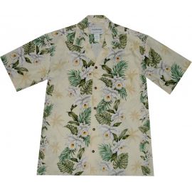 AL-811W- Orchid Panel White Rayon Mens Aloha Shirt