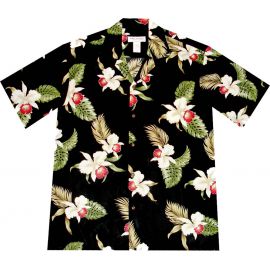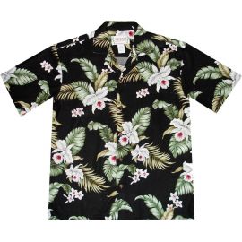 AL-816B - Makaha Orchid Black Rayon Mens Aloha Shirt