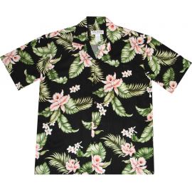 AL-815BP - Paumalu Pink Orchid Black Rayon Mens Aloha Shirt