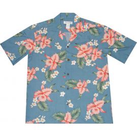 AL-815BL - Paumalu Pink Orchid Blue Rayon Mens Aloha Shirt